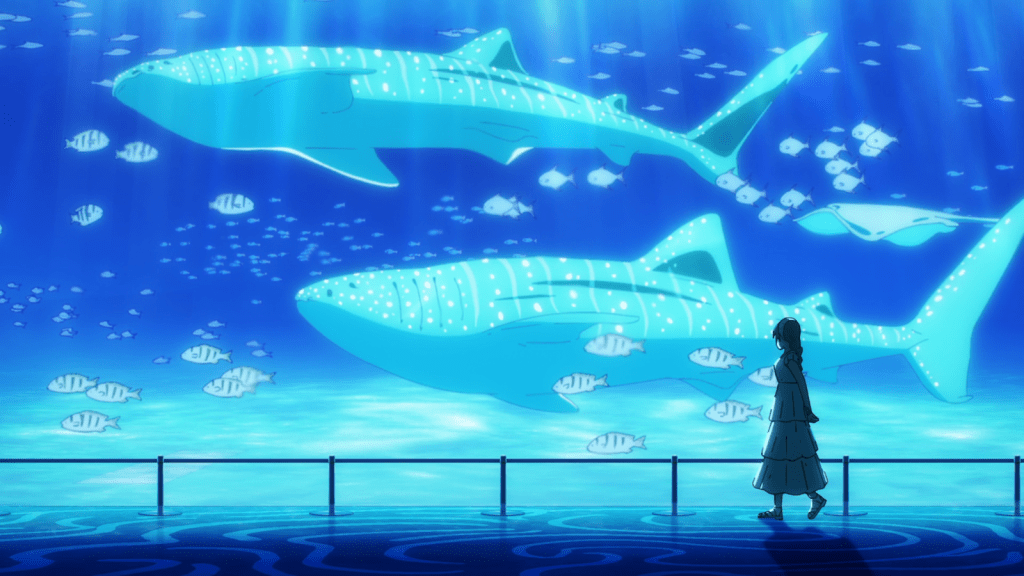Speaking of the aquarium scene, that was also a majestic visual delight. More than that, it was an important scene for Riko. It shows she is marveling at the wonders of life. I also think the ocean theme is symbolic for the way Riko just floated through life, always feeling like she was part of something greater, and never truly making connections. At the end of the aquarium scene, there was a brief shot of an exit sign, which blinked a few times and then went out completely. That was symbolism. At that moment, I realized Riko was going to die.
