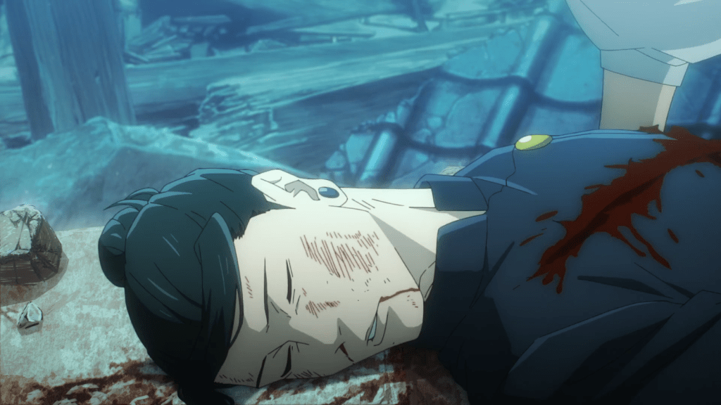 Speaking of Toji, it really did seem like he killed Gojo. I obviously know Gojo is alive years later when he is a teacher who takes in Yuuji Itadori. But what happened to him in this episode was pretty intense. I don’t know if it’s going to be believable to bring him back after all that blood loss and all those stabs and lacerations. There will have to be a heavy price to pay to bring Gojo back. I look forward to seeing if the anime can pull it off in a satisfying way. Anyway, that’s it for my thoughts on the astounding third episode.