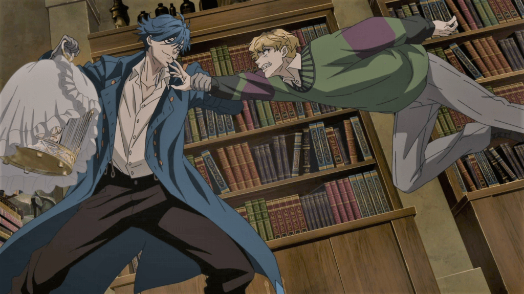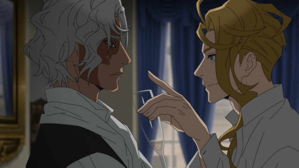 The two agents from Royce are pretty weird, and may prove antagonistic toward Aya and Tsugaru. Sherlock and Watson were rather boring, to be honest. I expected some bright new take on their characters, but they were very standard and classic. It was also intriguing to see the old man with the M cane. He is keeping the old team of Oni Slayers with him. My last note to add is that Lupin is quite flambouyant and his vibe with Phantom is pretty gay. My inner fujoshi celebrates. Episode 5 was a good one for sure.
