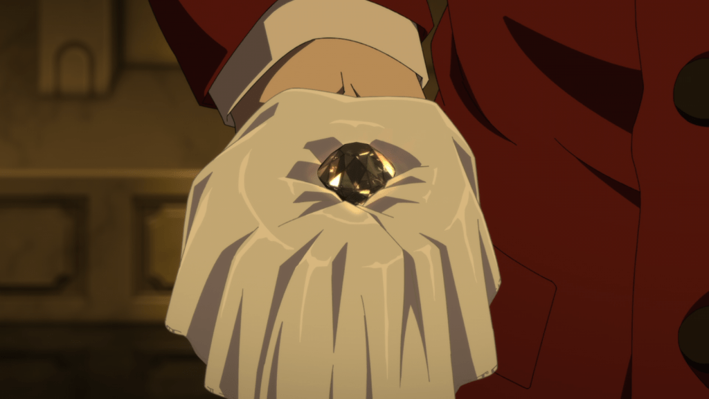 After a brief misunderstanding, Sherlock and Aya are both welcomed into Fogg’s mansion, along with Dr. Watson, Tsugaru, and Shizuka. There are also two agents from Royce, a powerful organization with a history of exterminating monsters. Mr. Fogg takes all these people down into the basement and shows them the diamond in its fancy silver box. He explains that the jewel is a magic artifact from the 1200s, crafted by Dwarves. There is writing on the sides of the diamond that says something about a wolf that dwells inside.