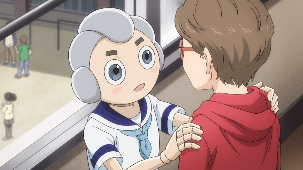 In the end, Perm graduates the school after only six months. That’s just how smart of an AI he is. Thanks to his experiences with human friends, the little robot sets off into his new life with a positive attitude. Perm’s story was interesting enough, but somewhat puzzling. I’m not sure if viewers are supposed to think that robots “have hearts” or not. It definitely seems like Perm had emotions. Well, whatever the case, it was sweet to see the children interact with him in an uplifting way.