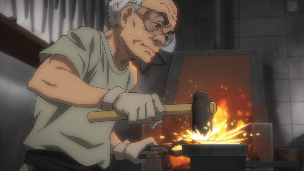 The first half of the episode was about a robot working as an apprentice under a metal-worker/blacksmith. The man in charge wants to teach robots ancient trades to preserve them as history changes. The robot is an especially talented mimic and loves to learn new skills, so he is often called “Learner-kun.”