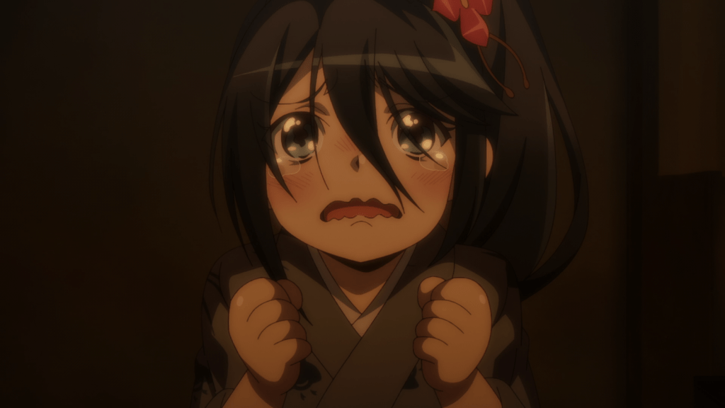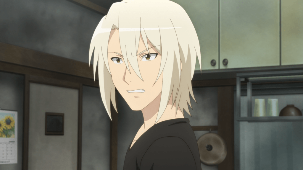 Suzuno is also a character I hold in high regard. She’s cute, tough, polite, and thoughtful. The way she calls everyone “dono” (a very old-fashioned way of saying “Mr.”) is adorable too. Despite usually maintaining a certain level of aloofness, Suzuno occasionally makes humorous mistakes. In this episode, she spills udon sauce on her favorite kimono. It’s apparently so upsetting to Suzuno that she locks herself inside all day and cries.