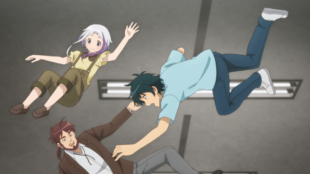 After finding out that the older man is Emi’s father, Mao takes him and Tsubasa to the apartment. He then promptly leaves again with “Tsubasa,” who is indeed a shard of Yesod, and whose real name is Acieth. Speaking of names, Emi’s father is called Nord. He, Ashiya, and Rika are now the only ones left at home. Ashiya tries to explain things to Rika at some point, but the human doesn’t seem fully convinced yet.