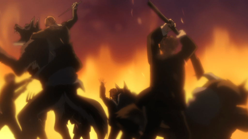 It was a bit difficult to watch this episode play out. To be honest, I had forgotten that humans are always the truly evil ones in stories like this. Yet no matter how many stories I see where “humanity was the real monster all along,” it still surprises me and fills me with anger. The destruction of the werewolf village was brutal. Human villagers, led by the two Royce Agents, set everything on fire and massacred the wolf people. I’m glad Vera at least will survive, but it’s still a horrendous tragedy.