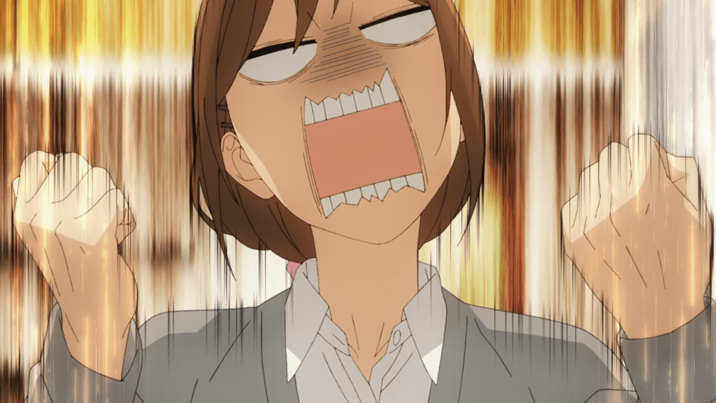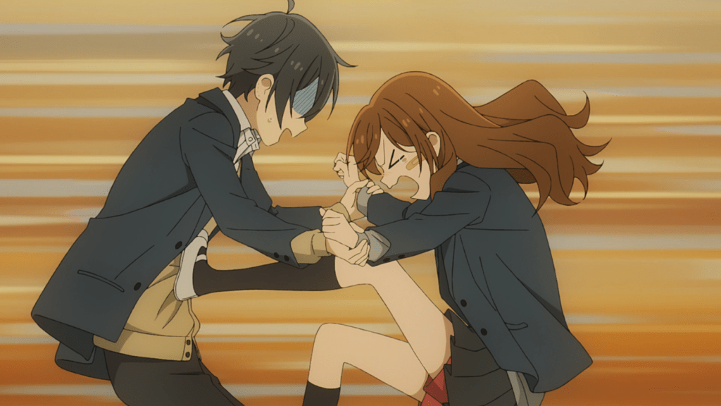 Hori’s unusual nature is sometimes just quirky and innocuous. Other times, it’s genuinely concerning. For example, Hori has been known to angrily hit Miyamura during a few of their fights. This is another case where something toxic and serious – domestic abuse – can occasionally be humorous in fiction. However, for me personally, I am not amused by Hori hitting or kicking her boyfriend.