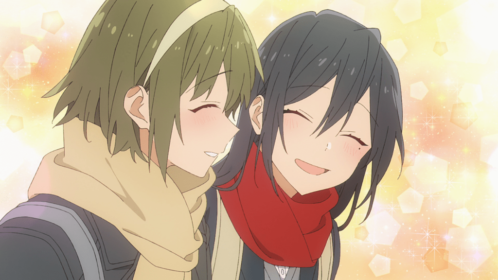 In the first season, Sawada hugely admired Hori. You can call it respect or whatever, but I think Sawada is probably LGBT+ and Hori is her first love. While she hasn’t stopped loving Hori yet, Sawada is slowly accepting that she’s “taken” by Miyamura. Furthermore, rather than hating Miyamura, Sawada has more or less become friends with him by the time of graduation. She’s can be mature when it really counts.