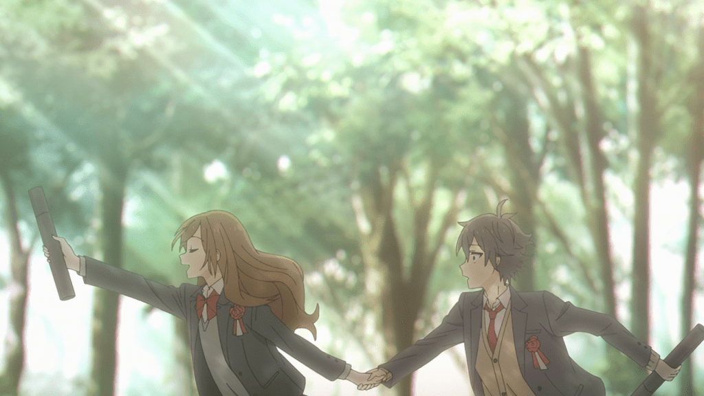 Speaking of sappy, I felt very moved by Hori’s monologue when she and Miyamura were leaving the school with their diplomas. These characters and their lives are so beautiful and heart-warming! Avoiding tears was difficult for a big crybaby like me.