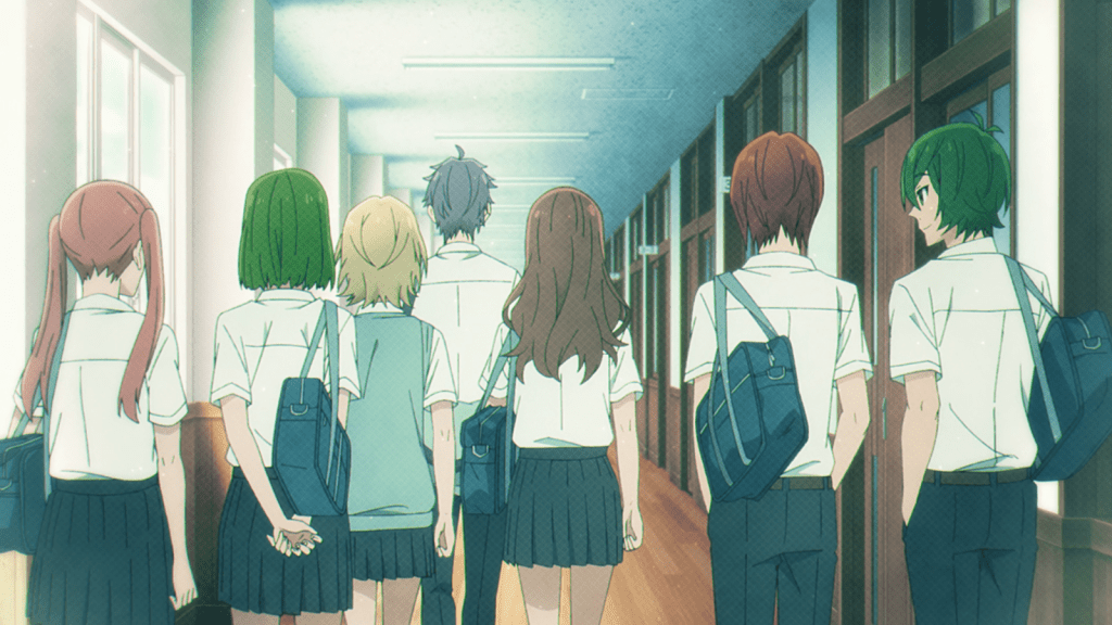 The final episode of Horimiya was entertaining and touching. One part that I thought was interesting was the prolonged scene where Hori’s friend group forms itself. I’m not sure if it was supposed to be a flashback or not. The characters we know all became friends with each other – even Yanagi – before anyone got to know Miyamura. It felt like it was a vision of a world where things happened in a different order – an alternate universe.