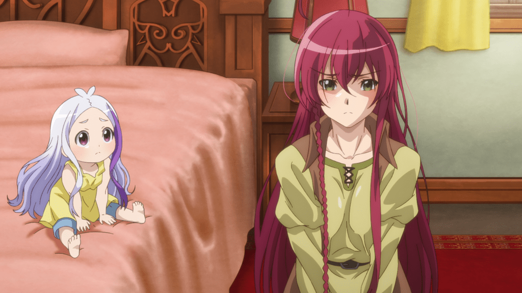 The only bits of this episode I didn’t like were centered around Acieth. She has an amazing character design and I don’t mind her being bratty to Mao once in a while. What bugs me are her sexual/romantic jokes, such as the one about “giving my body to you.” I just don’t find this amusing. Even if she is an eternal weapon spirit, Acieth’s human form is child-coded, and I have no desire to hear a little girl make weird innuendos. Jeez.