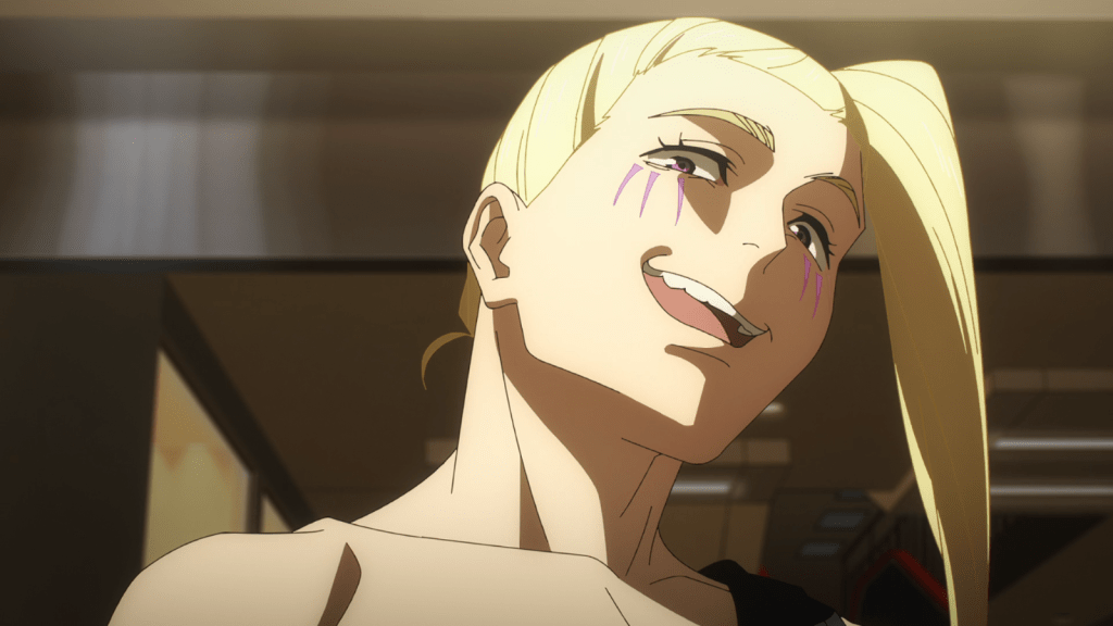 Besides the return of Toji, the most interesting part of the episode (for me) was learning more about Mei. I never knew she was so dramatic and flamboyant when fighting. She’s normally so measured and reserved. Apparently, I didn’t have a great understanding of her personality. Oh, and I almost forgot to add something important – I also loved seeing Nanami defeat Haruto. That sadistic creep really had it coming to him. Yay!