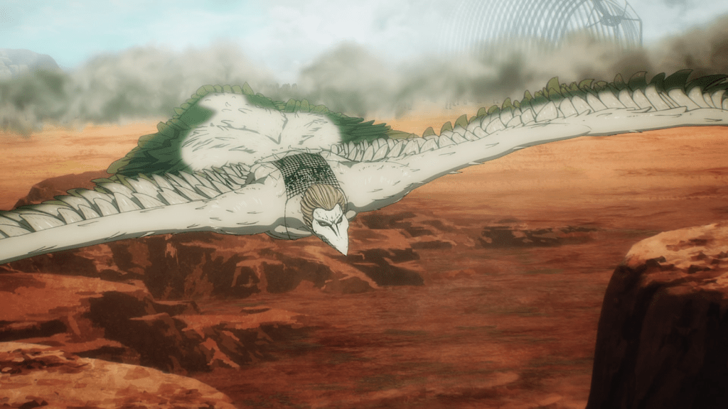 I like the way the anime special showed Falco rescuing Mikasa and the others. That being said, I’m not a fan of using very cheap 3D CG for any of the titans, including the bird. (The visuals as a whole are undeniably inferior ever since the studio switch to Mappa. But what can you do?) Falco is a great kid, and birds have always been his “thing.” It’s fitting that he be the one to fly.