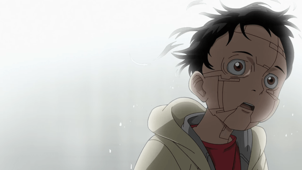 This is where the nightmare becomes especially strange. The imagery clears up so everything is vivid. There was a devastating crash on the highway between two vehicles. Then we see a man – who we now know as Dr. Tenma – crying over his dead son, Tobio. In the following scene, “Tobio” is apparently alive again – and he looks identical to Atom. Tenma, along with Gesicht’s wife, are overjoyed to see the boy walking. But then Atom/Tobio falls apart. His human-like exterior shatters, and tears form in the robotic eyes of the broken mechanical leftovers.