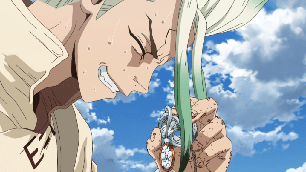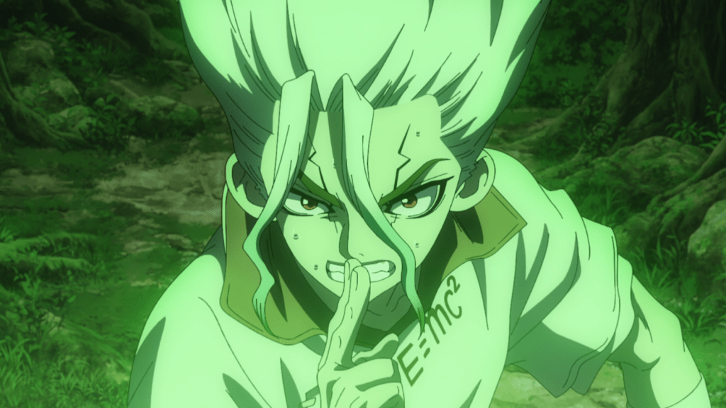 Initially, I thought this would be kind of a slow-paced episode just showing the characters being unfrozen and having victory celebrations. In actuality, this episode was hugely important for the plot. The mysterious signal sender from earlier, dubbed “Why-Man” by Senku’s group, sent a vocal transmission. It’s now clear that this being is an enemy, since he tried to activate the medusa and petrify the Earth once more. Moreover, the voice was an artificial one that copied Senku’s voice. That was genuinely unsettling.