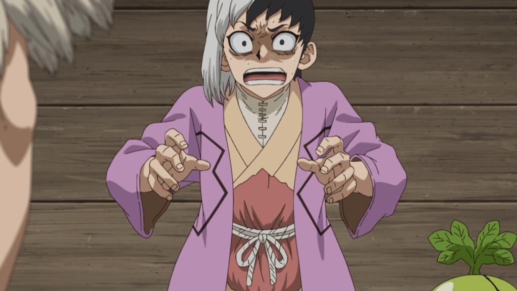 Episode 20 was so much fun so many reasons. To start with, Kohaku was revived! I’m so happy to see her back. It was sweet when she hugged Senku, and I’m glad Amaryllis clarified that it wasn’t a romantic thing. Ginro also returned and is now fully healed. Despite my better judgment, I felt optimistic that Ginro would be less scummy after his experiences on the island. But nope – he’s still a little scumbag, and I don’t personally find him funny for it. What can you do?