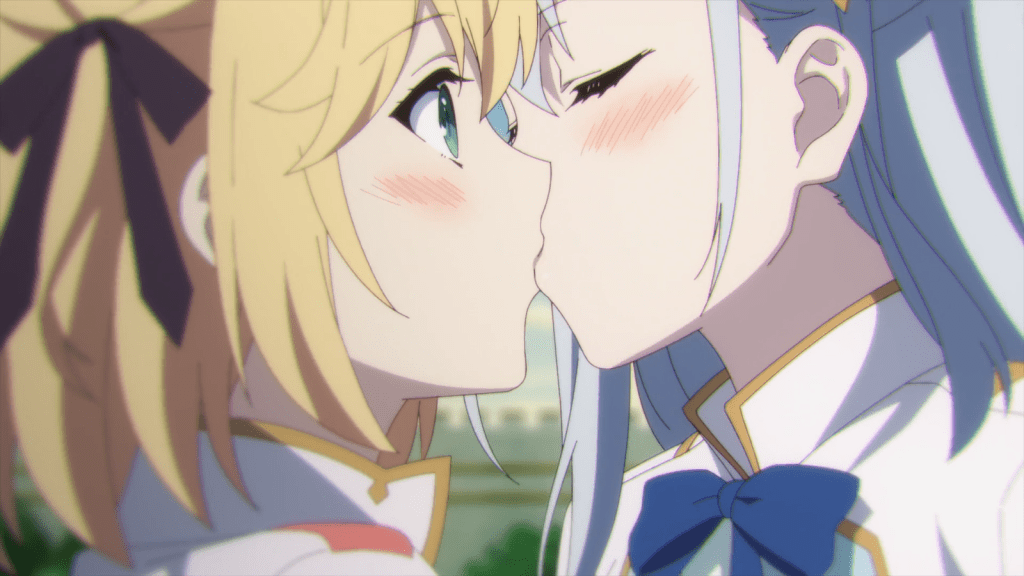 TenTen Kakumei is a Girl’s Love anime. But it’s also a decent example of LGBT+ representation. The main princess, Anisphia, is a lesbian who “came out” to her parents when she was only 5, proclaiming that she would someday marry a woman. The love interest, Euphie, is also some flavor of queer, though it isn’t as clear as Anis’ case. She eventually returns the feelings of the strange princess, and the two become a couple.