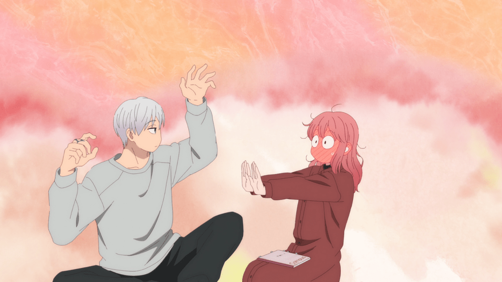 A Sign of Affection (Yubisaki to Renren) is so far a delightfully fluffy and sweet romance story that happens to be about a girl who is hearing-impaired. I was hoping for a little more commentary on the difficulties of this disability, but I’m also enjoying the more educational spin of watching Yuki be functional and effective at communicating.