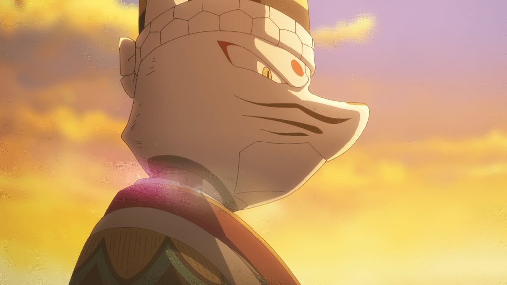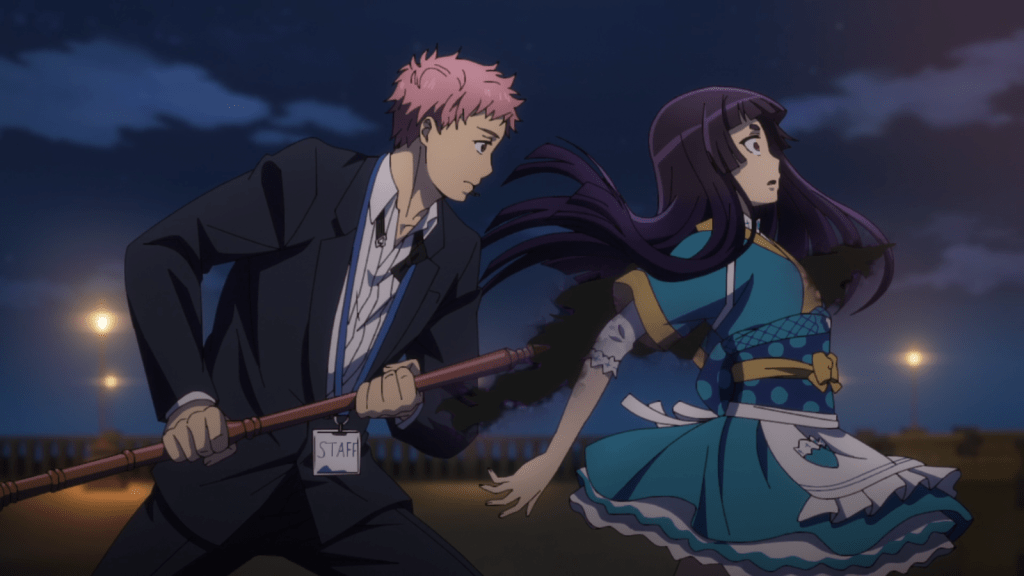 There’s still a lot we don’t know about Nemu Takara. For example, what we knew as Nemu until this point may be another personality or a demon. The real Nemu is almost always sleeping. He woke up briefly in this episode while Shima was roasting him with black soul-fire. When that happened, Nemu actually opened his eyes, and they were both beautiful and terrifying. The puppet quickly urged him to go back to sleep, but the eerie moment still had a strong impact on Shima and Izumo.