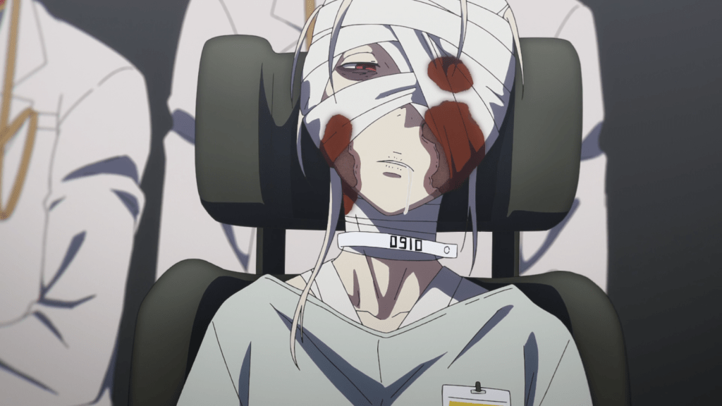 This episode was rather intense at a few different points, but mainly when we saw Izumo’s mother. She was incredibly torn up, covered in burns, and not mentally “there” at all. The doctor supervising her, Gedoin, is possibly the most hideous character I have ever seen in terms of design. He is also a completely narcissistic, sociopathic scumbag and pervert. Besides her mother, we also know Izumo has a little sister named Tsukumo who is being held captive by the Illuminati.