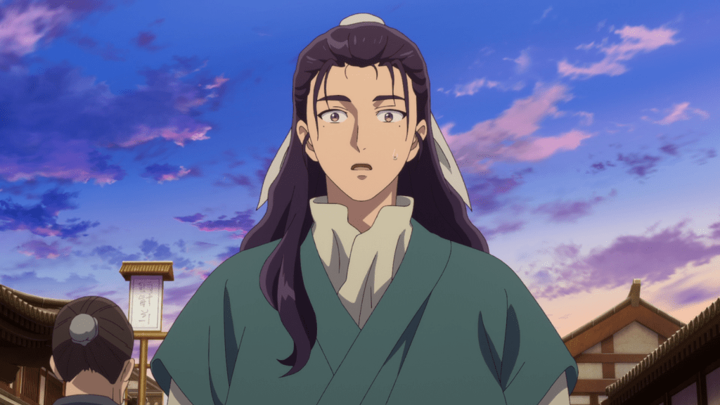 The last few minutes of the episode show Jinshi talking with Lakan again. He asked for the continuation of the story of the courtesan. In particular, Jinshi wanted to know how Lakan “reduced the value” of the entertainer. Lakan didn’t give a direct answer, instead suggesting that Jinshi should ask someone who knows the world of courtesans. As a result, Jinshi starts a plan to go out into the town and find the answer. He summons Maomao to do his makeup, and the episode ends here.