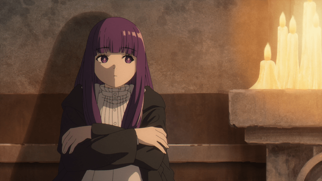 The episode ends there, but I wanted to comment a bit more on the conversation between Sense and Fern. It’s obvious that Fern trained intensely to become so skilled at so young an age, so Sense is puzzled by her apparent lack of passion and ambition. Fern explains that she became a mage to repay a debt to the man who saved her and gave her a safe, happy life. She didn’t think about what would happen once her goal was accomplished. Maybe, Fern suggests, she used up all her passion on that goal, leaving her empty now.