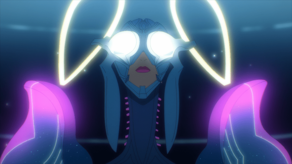 As we discover in episode 9, the Visitors were the ones who bestowed upon humanity the technology that allowed them to create Neans – semi-biotic androids with brains as complex as those of humans. This is a good example of aliens being used as a plot device. Rather than trying to spin a narrative in which humans create Neans by themselves, the writers of Metallic Rouge simply had the aliens do the dirty work. The Visitors are basically gods who provided “magic” technology and laid the groundwork for the story to happen.