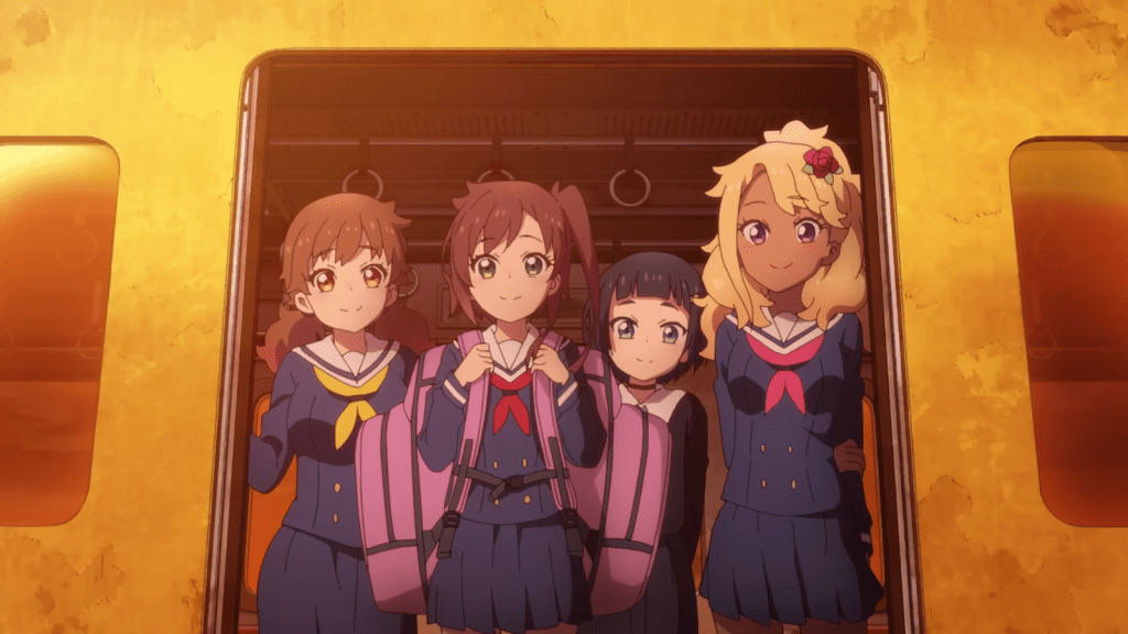 As of the time of writing this article, only one episode of this anime has been released. But one episode was enough to set up the premise very well and draw some conclusions about the nature of this show. Shizuru sets out on a journey to Ikebukuro aboard the train. Her three friends accompany her as well. It’s very clear that Train to the End of the World is one of the anime series I would classify as delightfully absurd.