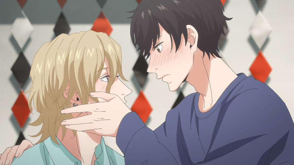 The second episode was intense and moved very quickly. Learning about Hisashi’s past was unpleasant, but important for his character. After Hisashi finally broke up with his abusive boyfriend – a pedophilic teacher – Mao took the opportunity to confess his feelings. Hisashi seemed to return Mao’s love. The two boys touched and kissed, but then Mao got self-conscious and doubtful. He ran away, leaving Hisashi in the dark.