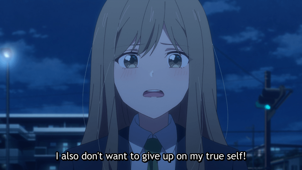 Makoto went to the dance party in a suit after throwing away their dress and high heels. But when they tried to throw away Aoi’s handkerchief, they finally realized they couldn’t go through with this. Aoi and Makoto met on the beach, after Aoi ran after a dump-truck to save Makoto’s high heels. Makoto admitted that they’d been lying. Aoi was happy to have her old senpai back. The two switched clothes so Makoto could wear the blue dress. Together, they danced on the beach. This ending was so beautiful it made me a little teary-eyed.