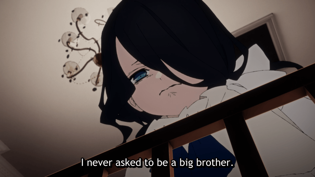 Meanwhile, Raphael’s issues are also pretty serious for his age. While Nanny is busy talking to visitors – Lady Lorca and her butler – Raphael takes baby Ul from the cradle and sneaks out of the house. He says he’s going to “get rid” of the baby. The twins, Angelico, and Theodore follow Raphael and start an adventure wandering around town unsupervised. Well, this a disaster.