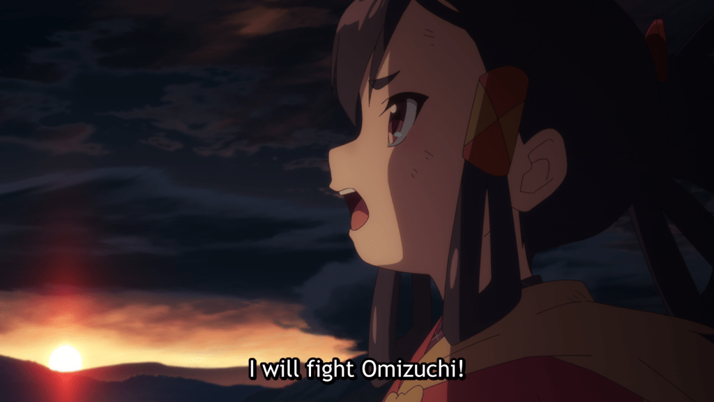 Sakuna: Of Rice and Ruin is probably meant for a very young audience, and so its messaging is simple, with overused and preachy elements. The light of forgiveness is literally a power that can save your life when fighting against a demon’s spiritual hatred. Despite the simplicity of the message, I end up thoroughly enjoying this anime with every episode. In this installment, the most interesting aspect was the conclusion of Tauemon’s character arc and his final parting with Ishimaru. The music was also astounding for this episode at several points.