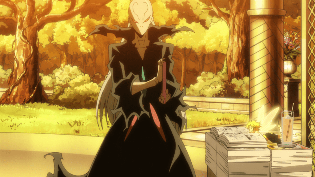 I was originally going to give this category a score of 5, which is unusually low for TenSura. It’s because there’s a big issue within the story category: the pacing. I mentioned in my last review that TenSura is not a thrilling anime. It’s about Rimuru developing his country, Tempest, over time. In this season in particular, having defeated the armies of Falmuth, Tempest must face the threat of Demon Lord Clayman.