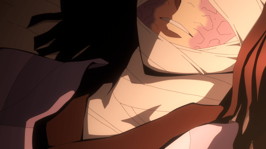 Years later, Genya is trying to apologize for saying such a harsh thing. It would be an understatement to say that Shinazugawa did not extend forgiveness. He insists that he has no brother and that Genya is dead weight in the Demon Slayer Corps. When Genya kept pushing to try to explain himself, Shinazugawa responded by attempting to gouge out both his eyes. Genya would have been blinded if Tanjiro didn’t leap in to save him.