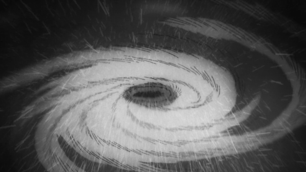 Imagine if a typhoon was sentient. Not only is it self-aware and equipped with desires and emotions, but it also happened to fall in love with you. This sounds very silly at face value, but if you really try to imagine how it might be, it’s a terrifying concept. This is what happens to Kirie in the subsequent plot-line. A typhoon hits the town and then stays there, hovering and causing destruction for hours. It has fallen in love with Kirie. It even begins to call “Kirie” with a windy voice. Creepy.