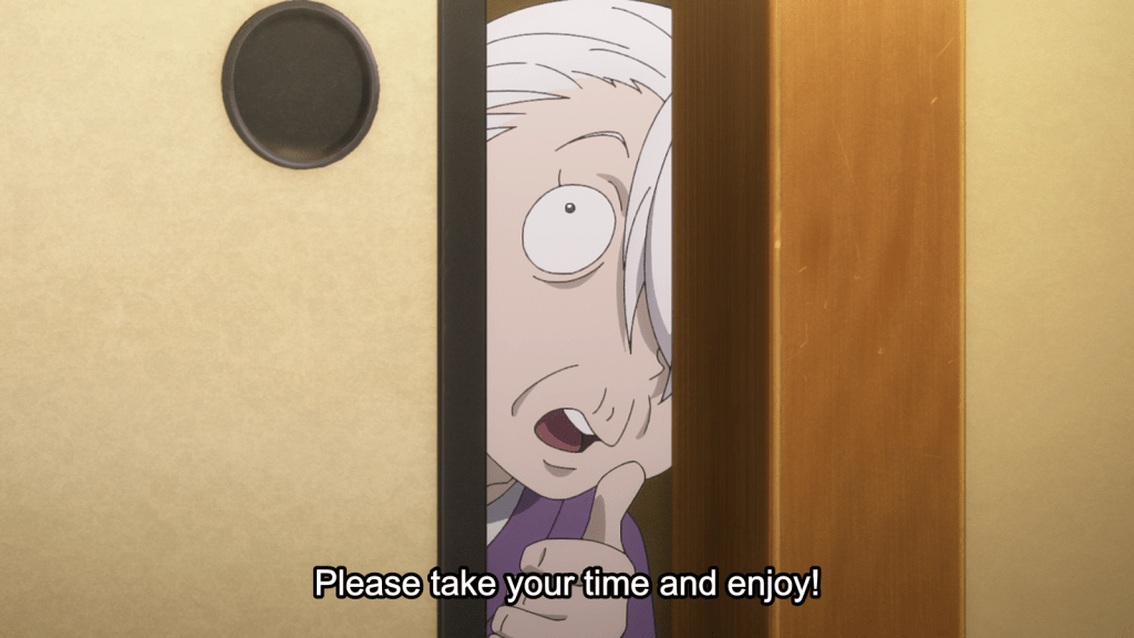 Before Rin and Yukio found Shura, they stayed in a hot springs inn overnight. There was a hilarious plot point wherein the innkeeper lady thought Rin and Yukio were gay lovers. She was supportive, by the way. Good on the old queen for being progressive, but also, she must be pretty senile to not notice the boys were fraternal twins. Anyway, it was really funny, especially since Rin didn’t pick up on it at all.