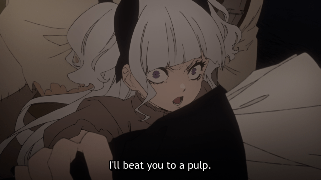 Throughout the first half of the episode especially, there was plenty of action. I was a little worried about returning to this series and starting on a boring episode, but this installment kept me entertained with the fight scenes. The visuals for the combat sequences were nothing spectacular like you would see in, say, Demon Slayer. But they were more than adequate for a series that isn’t an action anime at all. Outside of the fighting scenes, the visuals are great because the style is so unusual. It won’t be everybody’s cup of tea, but I’m enjoying it a lot.