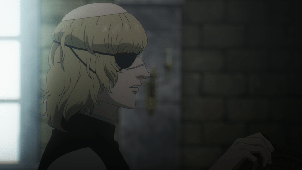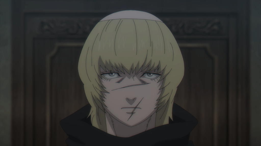 Badeni is a fascinating character. Yuuichi Nakamura is a surprisingly good voice for him, since he excels at playing arrogant or ambitious characters like Satoru Gojo. He’s a little full of himself, but I love Badeni because he’s so passionate about knowledge. He’s willing to get hurt for it time and time again. The cruel Abbot punishes his pursuit of knowledge, which by far outpaces the studies of all the other monks. Badeni’s self-confidence is not based on nothing – he is extremely intelligent and determined.