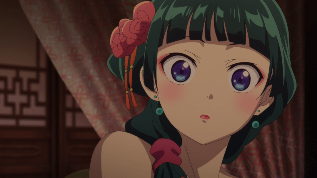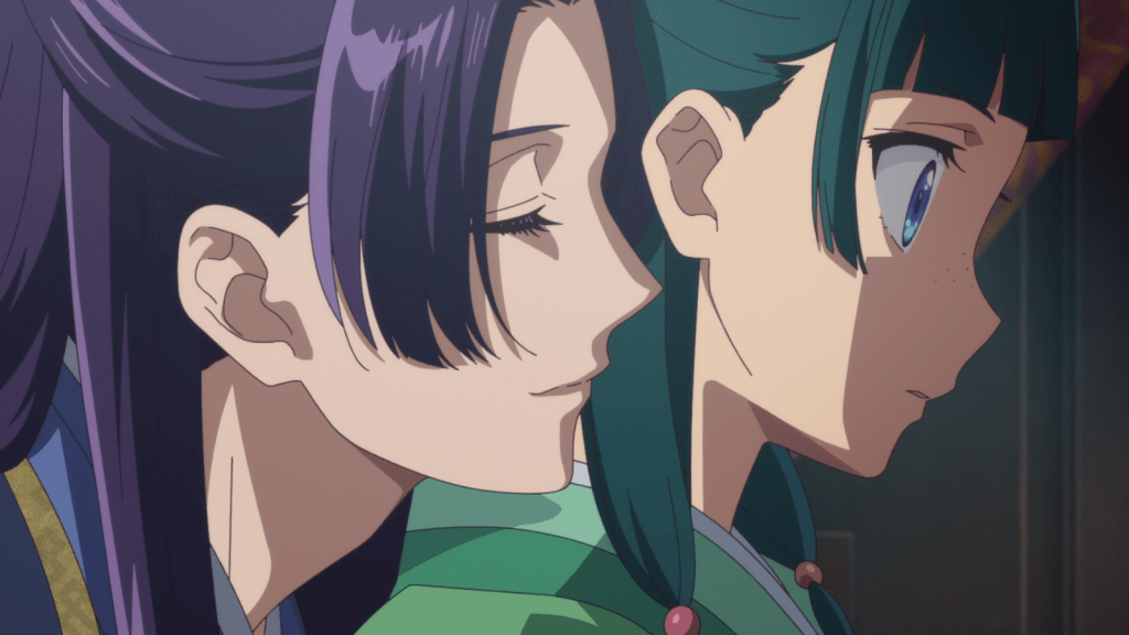 There was so much to enjoy in this beautiful anime. As I explained in the opening, I appreciate the way this anime looks and feels so gorgeous and colorful while also tackling some heavier subject matter. For example, sexuality is a big part of the story, as courtesans often use their bodies as goods and services. There’s also the weighty presence of classism and forced servitude. Maomao was “stolen” and “sold” as if she were property. There’s clearly some darker discussions to be had in this anime.