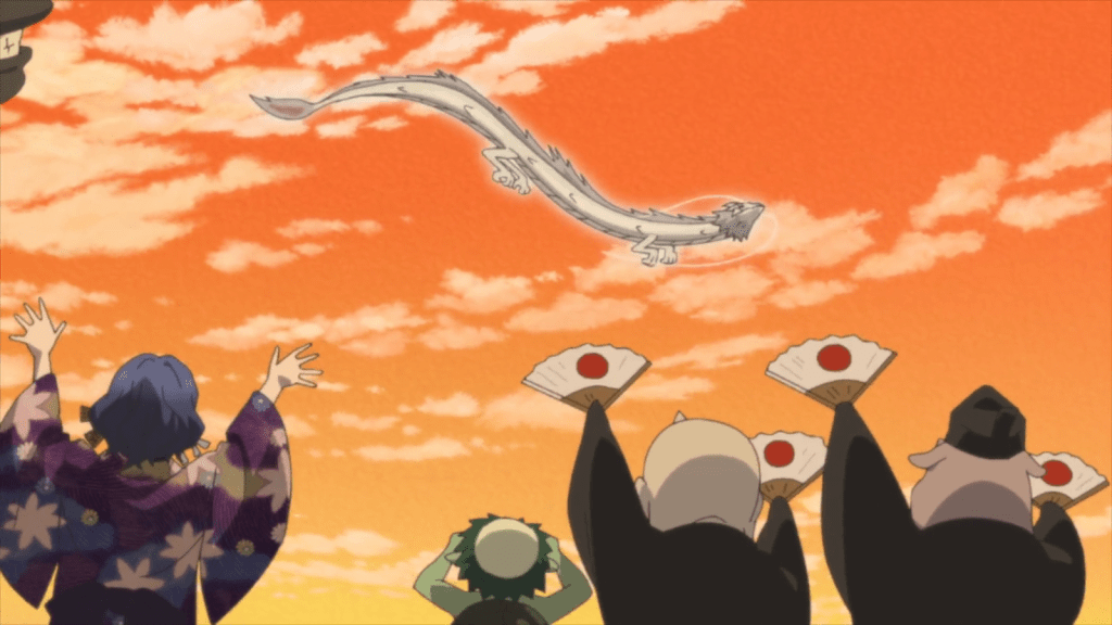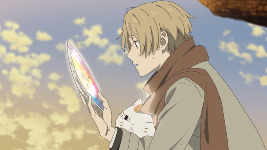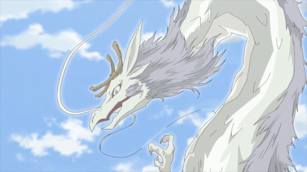 When presented with the gift, Chobi initially acts unimpressed. But there’s a reason for that. Much to everyone’s surprise, he reveals his true form. Chobi is actually the white dragon! To him, dragon scales are not that special. But because it was a gift from Natsume and his other friends, Chobi accepts the gift and uses it to make a new comb. He then flies up in the sky, dancing and twirling for everyone to see. Nyanko-sensei finally got to see a white dragon with Natsume. It’s a very happy ending.