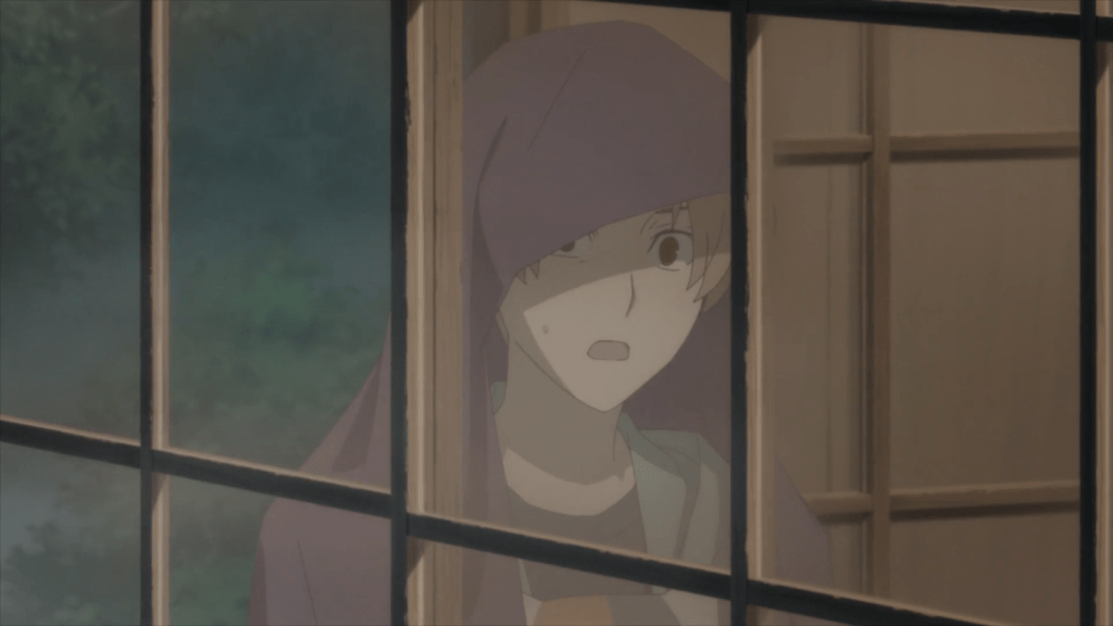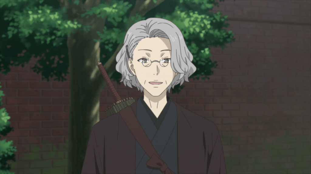 The next day, Natsume goes to visit Beniko Hakozaki, a female friend whose grandfather was an eccentric exorcist and did weird experiments with yokai. Beniko has seen a strange yokai around lately and asks Natsume to take care of it. Much to Natsume’s surprise, Matoba is also at the Hakozaki estate to deal with the problem. A few of his followers are with him, including Nanase. She is a very bad-ass older lady.