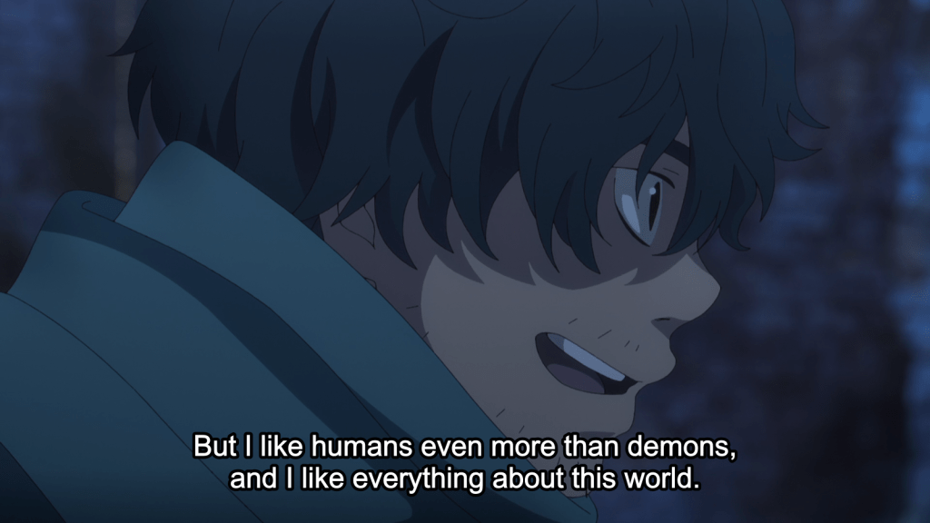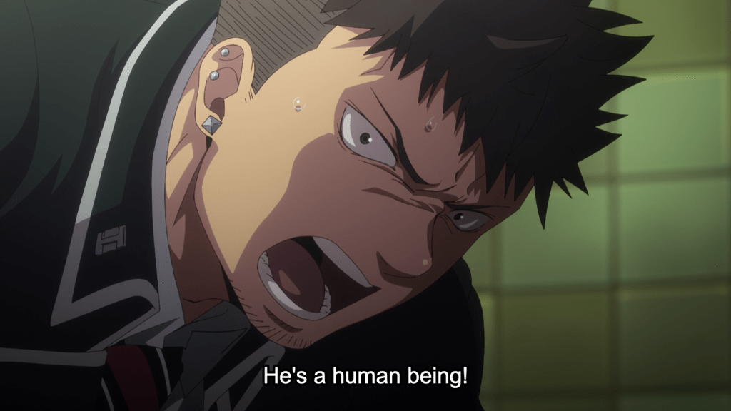 This episode was important for understanding Lightning as a character. Later, when he talks to Suguro, he basically admits to being a sociopath. “I’m not the kind of person who can empathize with other people,” he stated. But he also said that he’s improved since he was younger. He used to be cruel and violent, making others think he might be a demon. However, Lightning eventually loosened up and made an effort to be a better person because he genuinely cares about protecting the human world. After all, humans are even more interesting specimens than demons, he believes.