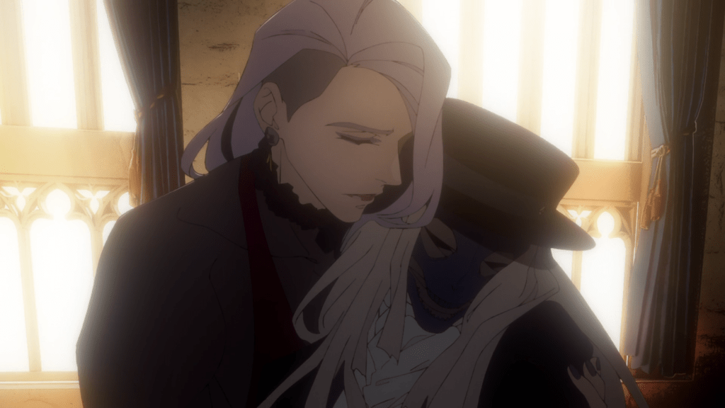 In the final scene of this episode, Juras almost collapses and starts violently coughing. Katarina is clearly concerned about him. Juras admits that he’s probably dying. But just then, down the hallway, he spots Teacher Krauss. Finally, it’s time to talk to the True of Vamp, the original vampire who mentally influences all others. To be continued.