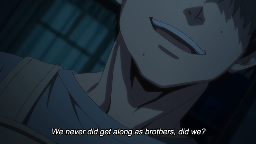 As you may recall, the previous installment ended with Yukio angrily yelling at Rin for not caring enough about the truth of their birth. Rin snaps back, demanding to know why his brother is so mad. Suddenly, Yukio switches attitudes and laughs before putting on his fake “Saleman’s Smile.” He tells Rin to forget this ever happened.