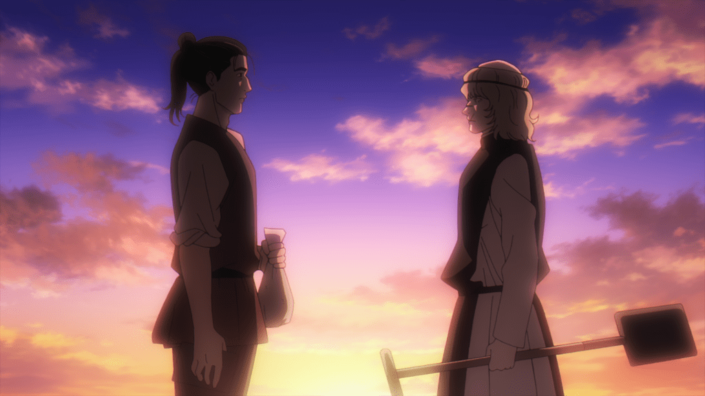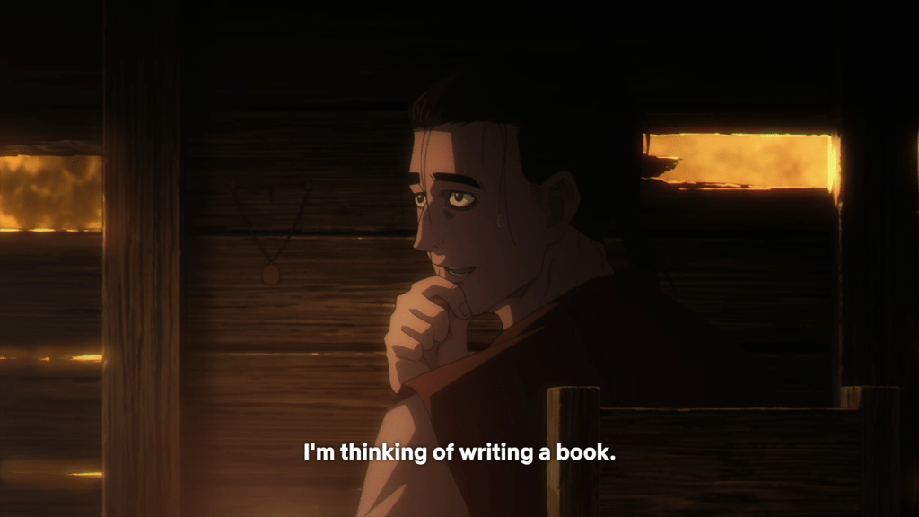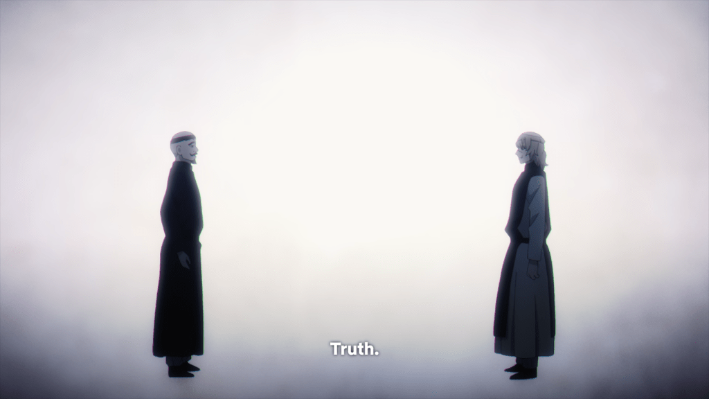 The last scene shows a bunch of young monks beginning their new jobs as Inquisitors. Two in particular seem to be important, but I didn’t catch their names. They listen to a speech from their church Father. Of course, said speech is horrendously problematic in all the ways religion tends to be. At the end of the episode, as the two young monks restate their passionate commitment to their work, they meet Nowak.