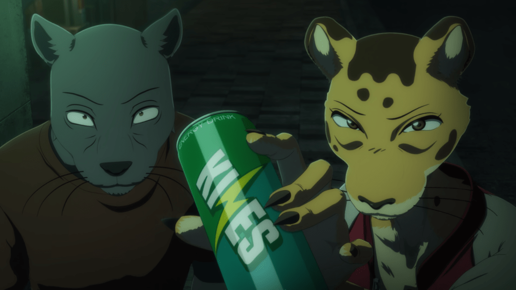Meanwhile, Legoshi encounters two young carnivores selling Kines. He tries to politely decline, but the two carnivores insist on him trying a sip. They crack open a can and the smell of whatever is inside begins to flood Legoshi’s sensitive olfactory system. Let’s hope it doesn’t make him completely lose it. To be continued.