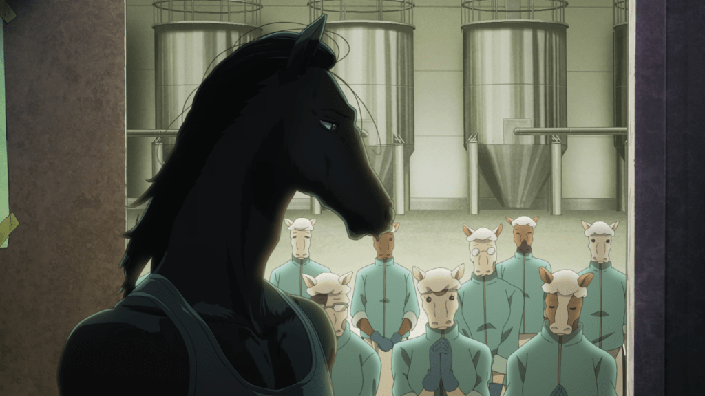 There’s also a short but extremely interesting scene where Yahya saves a bunch of cows from a slavery factory. Presumably, it’s common for animals to drink milk, and it’s not an illegal product. However, not all milk production plants are treating their workers well. That was the problem with this particular factory. The timid herbivore milk producers were being overworked and bullied by a carnivore boss. Yahya quickly showed that cat his place. As always, the world building in this anime is both fascinating and uncomfortable to consider.