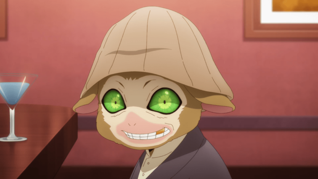 The rest of the episode was spent unraveling the mystery of the guest with the tarot card head. She is a lady and the card on her head is “The Lovers.” Atori isn’t too excited about helping this lady because she keeps calling him “Amorun,” the name of a famous streamer with a similar face. The streamer, Mamoru Agata, was known as a fortune teller. Neko expresses interest in helping with the case and is allowed to participate. She and the card lady and Atori search the hotel room for clues.
