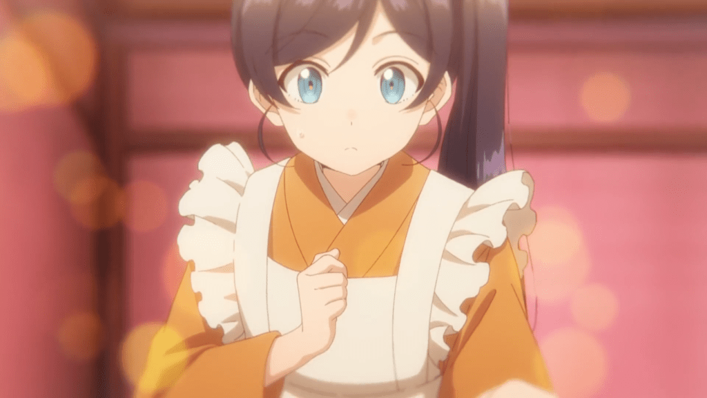 Now let’s mention the rest of the hotel staff. There’s a young man with light grey hair and blue eyes named Atori. He can’t remember his full story yet, and he got bored of waiting around the hotel, so he started working as an employee. There’s also a cute kitchen helper girl by the name of Ruri. Neko finds her adorable and is acting very gay about it. She’s practically drooling. It was funny, but I also can’t blame Ruri for being uptight when faced with such direct, fawning attention.