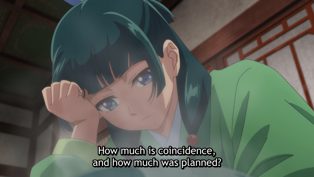 Thank you for visiting Anime Rants today. The Apothecary Diaries Season 2 is getting off to a bit of a slow start, it seems to me. However, each installment is still enjoyable and interesting in its own way. I hope the intensity picks up soon, but the plot might simmer for a while longer before anything starts to metaphorically boil. Here are some very brief notes on episodes 26 and 27 (AKA season 2 episodes 2 and 3). Enjoy!