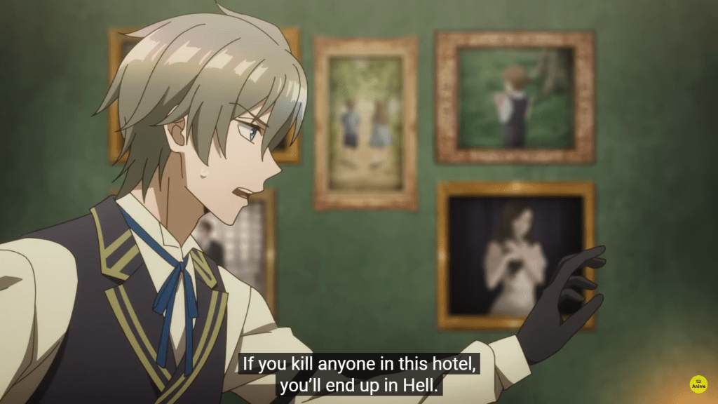 Neko and Atori disarmed Masaki and made him leave the hotel. Atori and the Manager also explained that if Masaki killed anyone at the hotel, he would go to a very real Hell. However, later on, Masaki returned. Understandably, Ruri wanted to turn him away, but the Manager explained that the rules say anyone can stay here until they know if they are alive or dead. Whether they’re saints or murderers, every guest has the right to stay until they remember what happened to them and where they are headed.